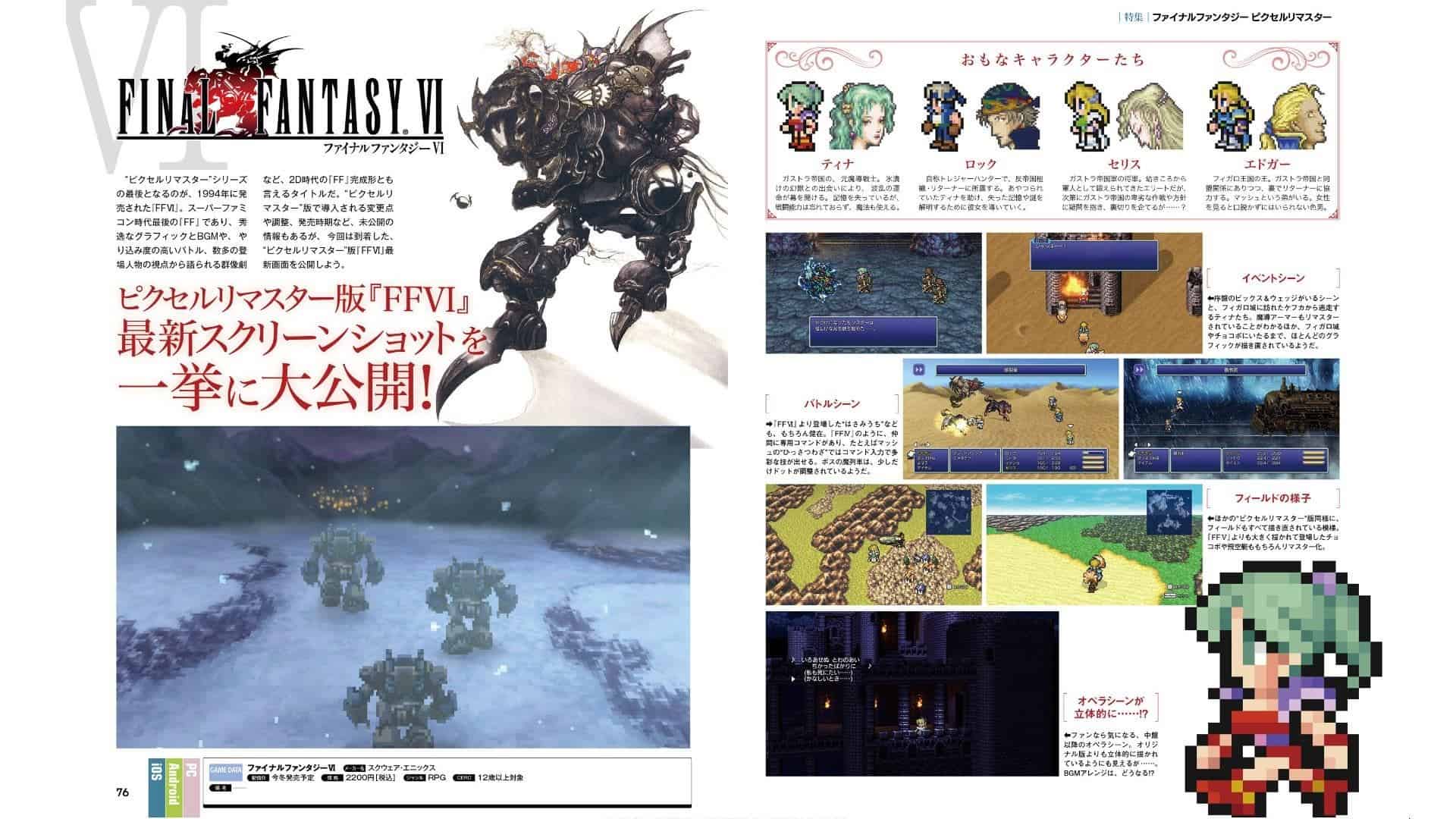 Famitsu has a new preview for Final Fantasy VI Pixel Remaster and the screenshots from the preview appear to showcase a moderate upgrade.